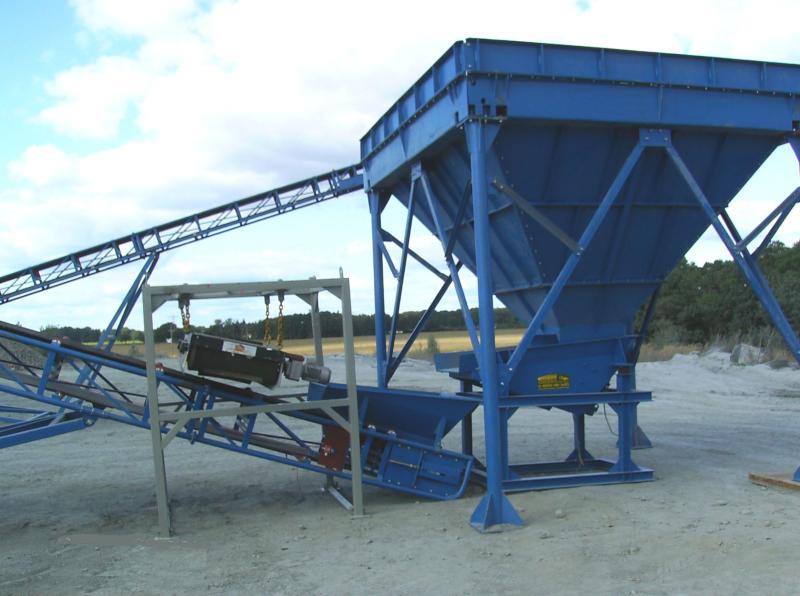 - Aufgabebunker mit Abzugsrinne, Aufgabeband und Magnetabscheider