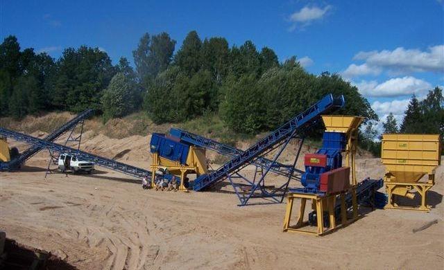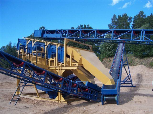 Semimobile Sand-Kies-Waschanlage mit Prallmühle, Sandschnecke, Aufgabebunker, Vorsieb,