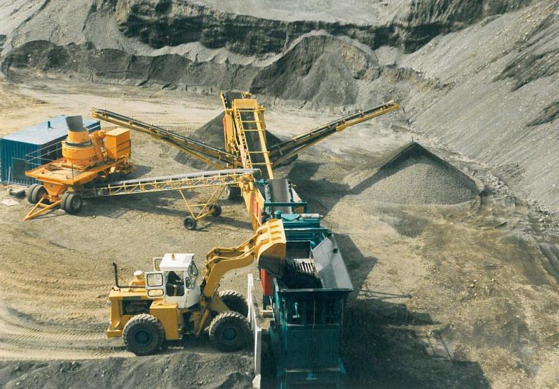 Radmobiler Backenbrecher, Kegelbrecher und Siebmaschine.